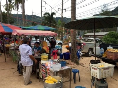 해변을 따라 걸어나가면, 금요일에 로컬 마켓이 섭니다.
