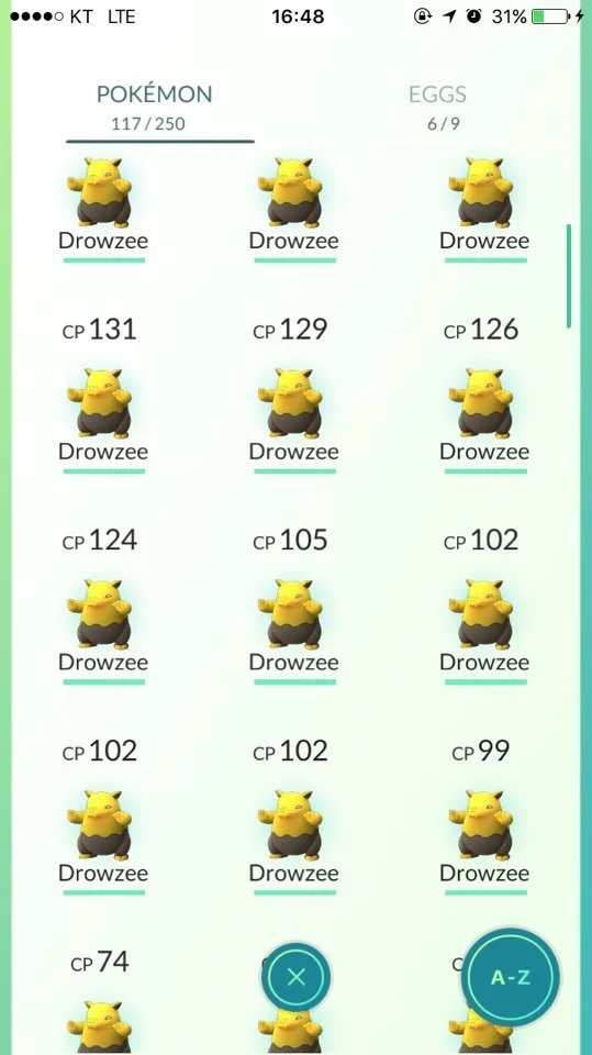 이게 도감을 완성시키는 재미도 있지만, 체육관에서 대전도 해야 하기 때문에 진화시키려면 결국 같은 걸 많이 잡아야 합니다.