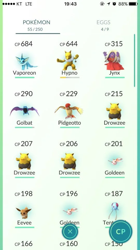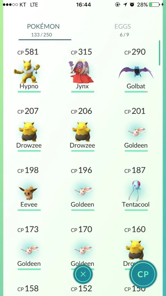 그리고 레벨이 높아질수록 기본적으로 CP(Combat Point)가 높은 애들이 잡혀요.