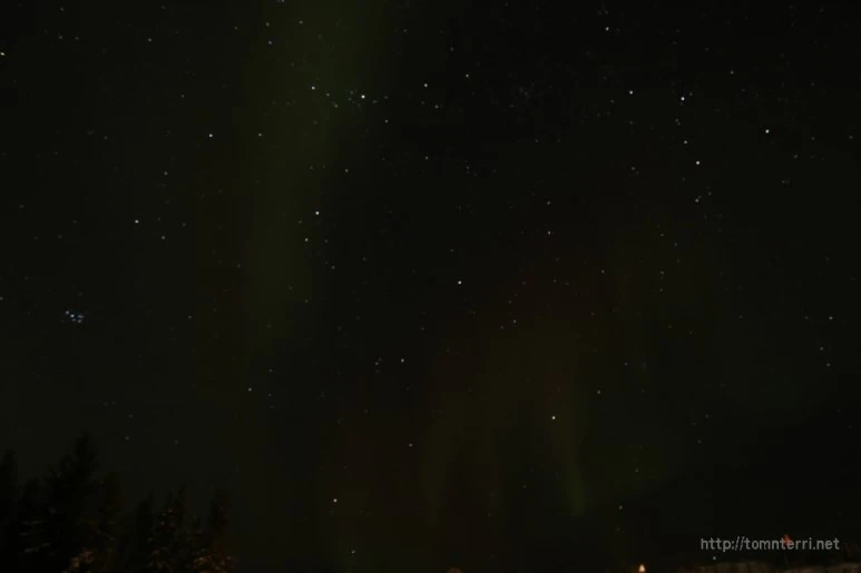이건 약간 붉은 빛을 띄게 나왔는데, 실제로 초록색이 아닌 붉은색/파란색 오로라도 있다고 해요