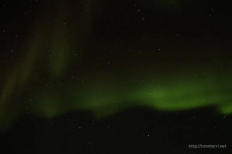 그리고 오로라를 직접 육안으로 보면 그냥 흰색이 반짝거리는 색깔이고, 초록색은 사진을 찍을 때만 나오는 색깔입니다.