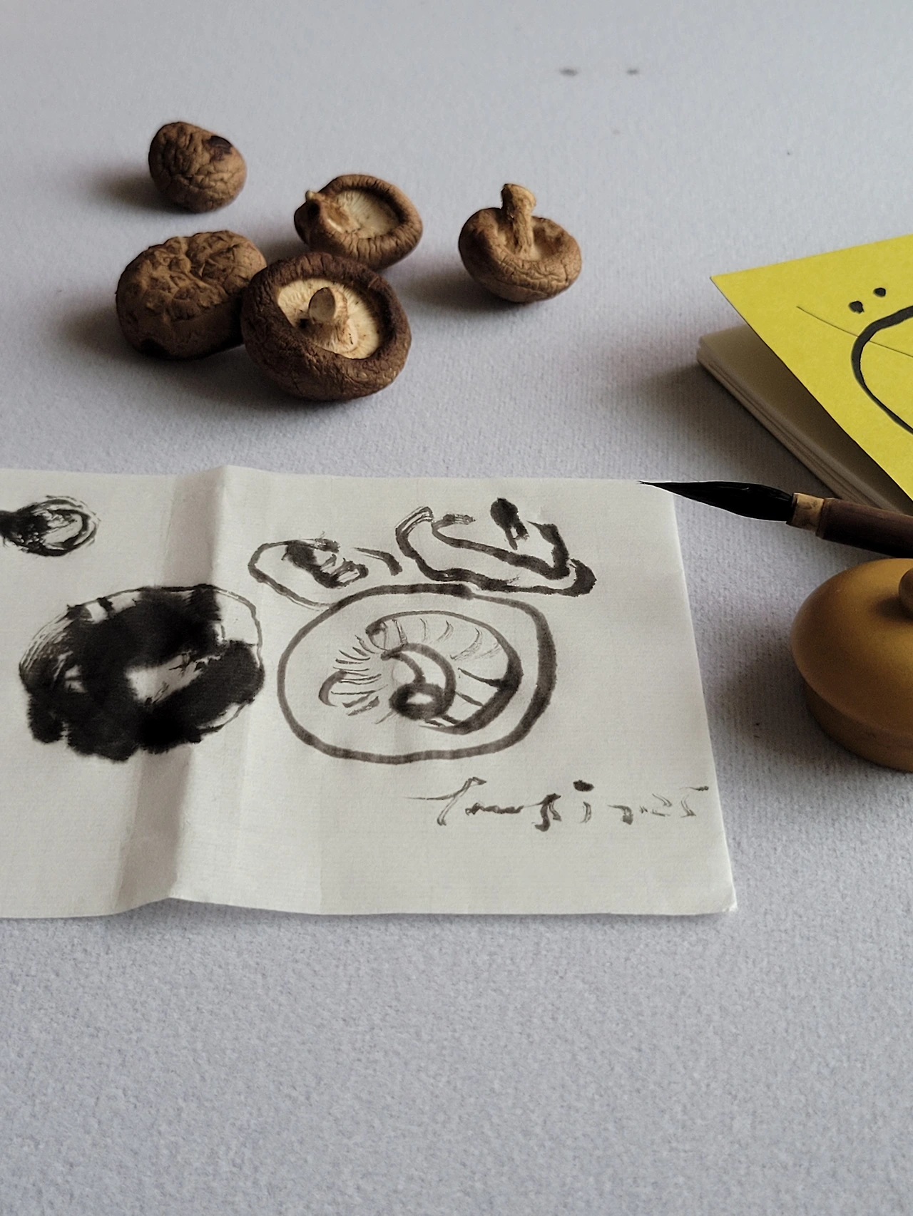 먹그림의 기본은 그냥 단순히 그리고 싶은 마음으로 출발하는 붓끝이다. 이것이 삽화 업무라면 버섯도 10컷 정도는 그려야 하지만, 오늘은 그냥 저 쿰쿰 내 나는 표고가 귀여워서 그려 보았다.