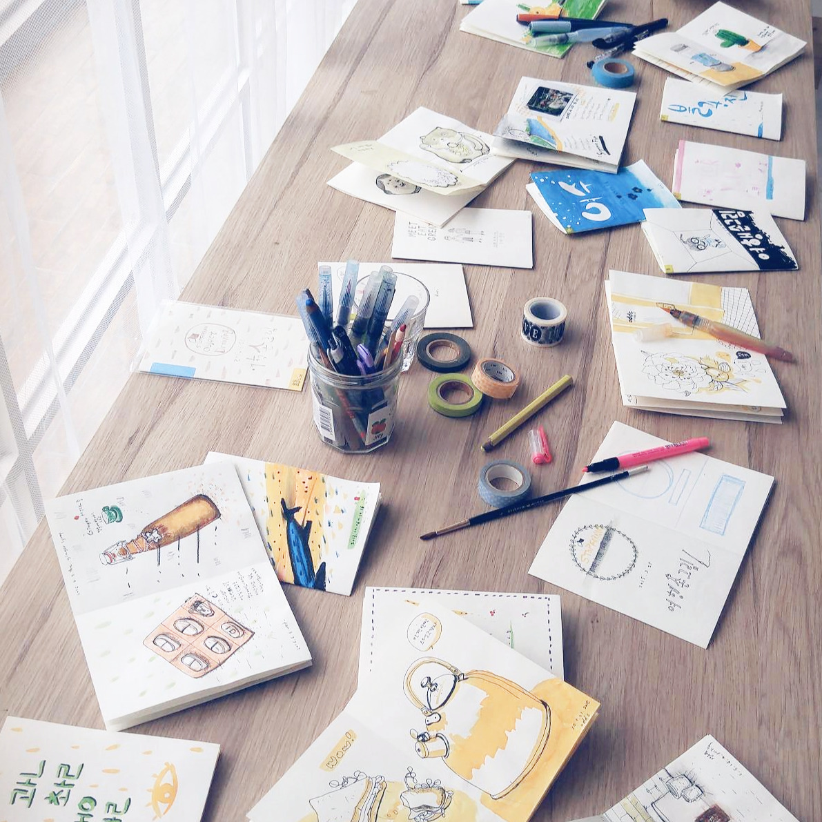 상업적 테두리 안에서만 볼 수 있던 세련되고 멋진 사진과 그림들이 이제는 개인도 만들어 낼 수 있는 시대 가 되었다. 그러다 보니 엄지와 검지가 SNS 몇 바퀴만 돌아도 얼마나 많은 사람들이 자신의 멋진 스냅사진들을 인터넷 공간에 올리고 있는지 볼 수 있다. 하지만, 손이 남기는 기록, 손그림이라는 방법은 '톡' 찍어내는 스냅사진 과는 다르다고 생각된다. 그림을 그리며 천천히 바라보고 기억되는 대상에 대해 집중한 시간이 우리의 뇌리에 마음에 오래간다는 것. 게다가 사람의 손은 자꾸 움직이고 만지고 싶어 하는 본능이 한 뼘짜리 여행 손그림으로 남을 때, 이것은 남들에게는 없는 나만의 컨탠츠가 되는 것이다.