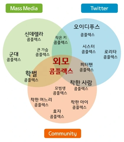 우리가 일상에서 사용하는 "콤플렉스"는 "자신의 싫어하는 부분"과 같은 의미로 아들러가 제창한 "열등 콤플렉스"와 근접한다. 이는 자기를 남보다 못하거나 무가치한 인간으로 낮추어 평가하는 감정으로 우리가 흔히 갖게 되는 외모 콤플렉스, 학벌 콤플렉스 등이 그러하다. 그렇다면 콤플렉스는 뭐가 다른 것인가. 굳이 대학교 때 교양과목으로 선택했던 심리학 101에 등장했던 프로이트, 아들러, 융까지 거론될 필요는 없을 것 같다. 그냥 쉽게 콤플렉스의 종류는 다양하고 몇 가지만 예를 들자면 아이가 엄마에게 지나치게 애착을 갖는 마더 콤플렉스, 어린이가 착한 아이가 되기 위해 욕구를 억압하는 말과 행동을 반복하는 착한 아이 콤플렉스, 여성의 높은 남성 지향 신데렐라 콤플렉스 등이 있고 우리가 "콤플렉스"라고 알고 있는 열등감 콤플렉스도 그중 하나라는 것만 알면 충분할 것 같다.