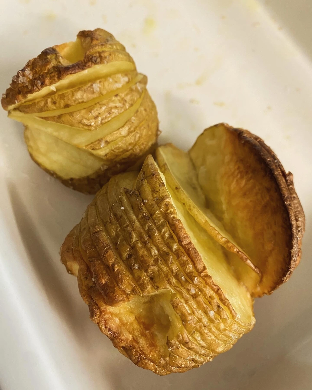 그리하여 새벽부터 감자를 박박 씻고는, 조심스레 아코디언으로 칼집을 내고 히말라야솔트와 올리브오일에 쓱쓱 버무려 오븐으로 쪄낸다. 누가 보면 출근 안 하냐고 물을지도 모르겠다. 하지만 감자를 먹고 출근해야 힘이 난다. 1개만 먹어야지 하고 시작한 일이 1개에서는 못 멈추고 마는 게 문제다.