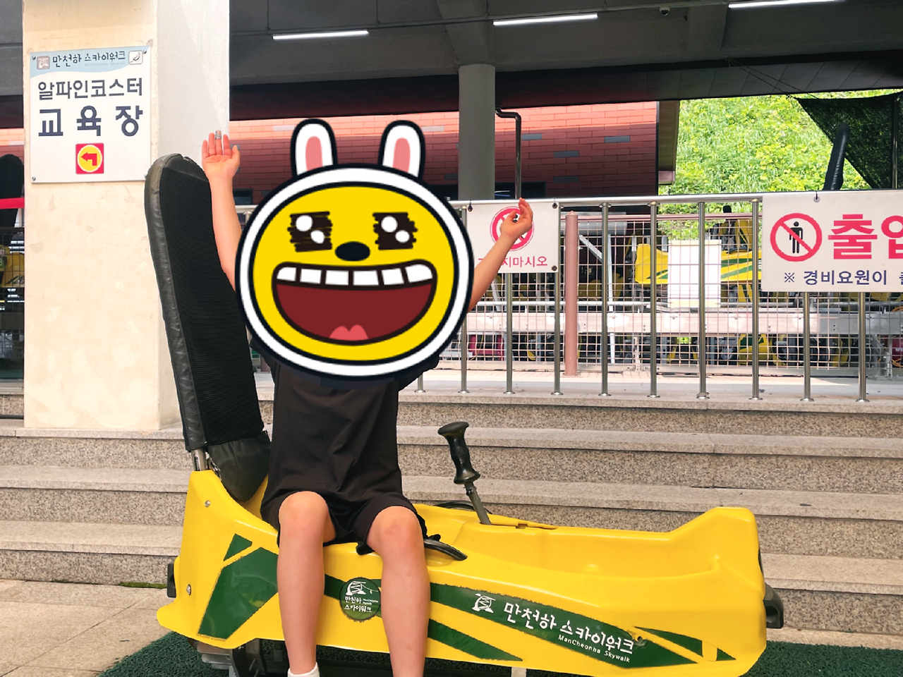 알파인코스터티켓을 타면 바로 타는 게 아니에요. 놀이기구를 타는 사람이 직접 기어를 잡고 속도를 조절해야 하기 때문에 먼저 교육장으로 이동합니다. 교육 중, 강사님께서 어찌나 겁을 주던지 땀이 나더군요. 저희 아이는 구역질까지 했습니다. 걱정 마세요. 무섭지 않습니다. 그렇게 겁먹던 아이도 최고속도를 내며 즐겼을 정도니깐요!