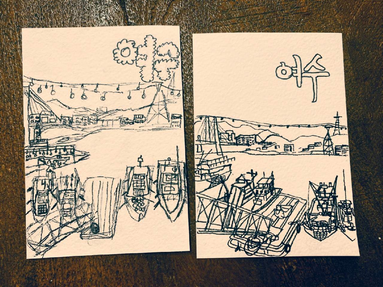 맛있는 금요일, 눈이 즐거운 주말로 인하여 아이에게는 주말이라서 행복한 금토일이 금요일외식데이와 주말영화데이를 통해 더욱 다채롭게 기억되길 희망하는 바입니다. 전 여수여행의 기념으로 아이와 함께 여수엽서를 만드는 중입니다. 서로 집중하며 여수의 풍경을 그리다 보니, 여행할 때의 기분이 새록새록 떠오르더군요. 추억을 만드는 일에는 꼭 돈이 들어야 하는 법은 아니라서 안도의 한숨을 쉬어 봅니다.