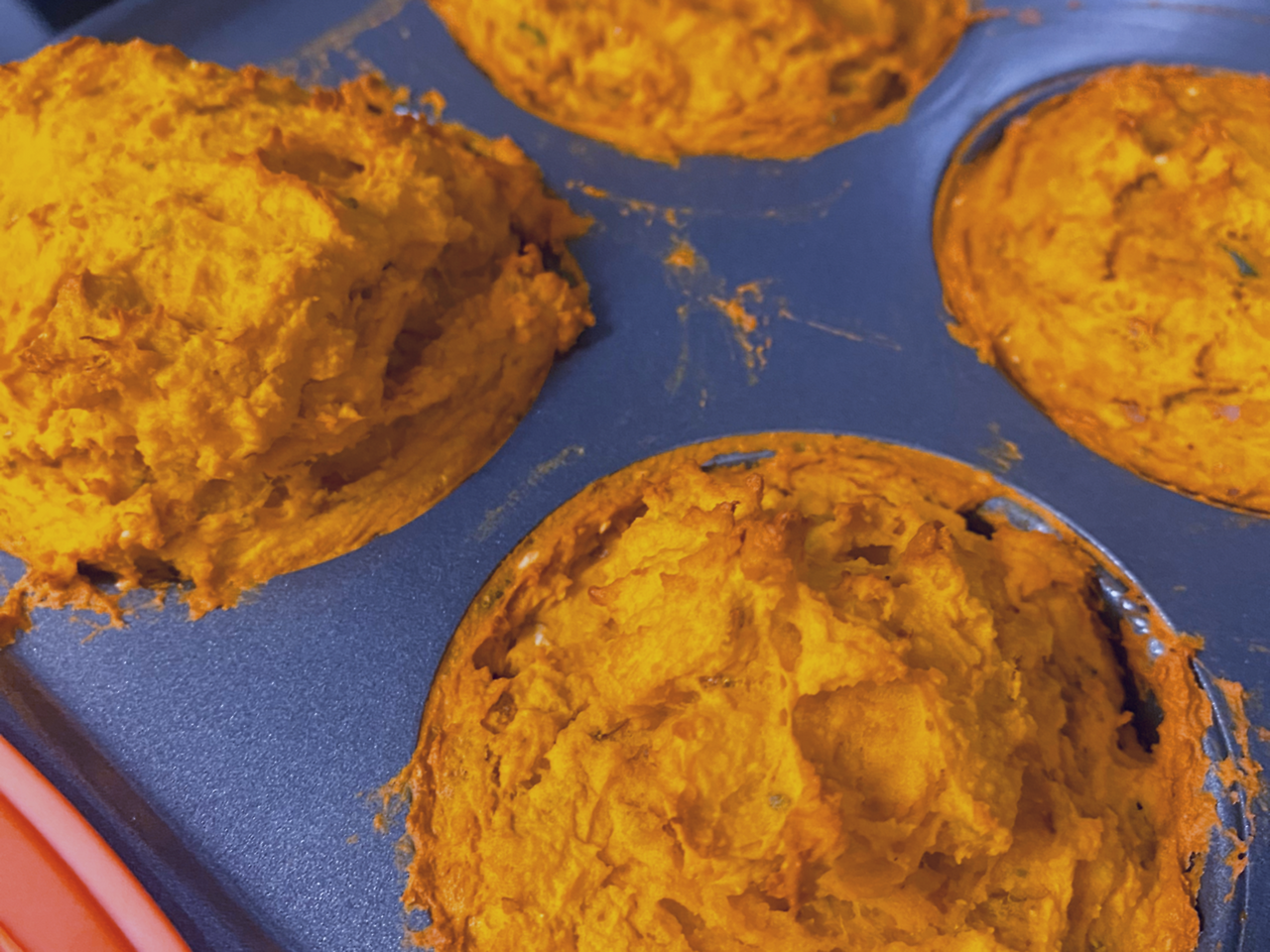 4. 올리브오일을 틀에 바른 후에, 3의 재료를 넣어서 오븐에 구워줍니다. 보통 180도, 20분이면 좋은데, 상태에 따라 가감해 주세요. 전 엘지오브제 광파오븐을 사용하고 있어서, 오븐/스콘으로 구워주었더니 딱 좋았습니다.