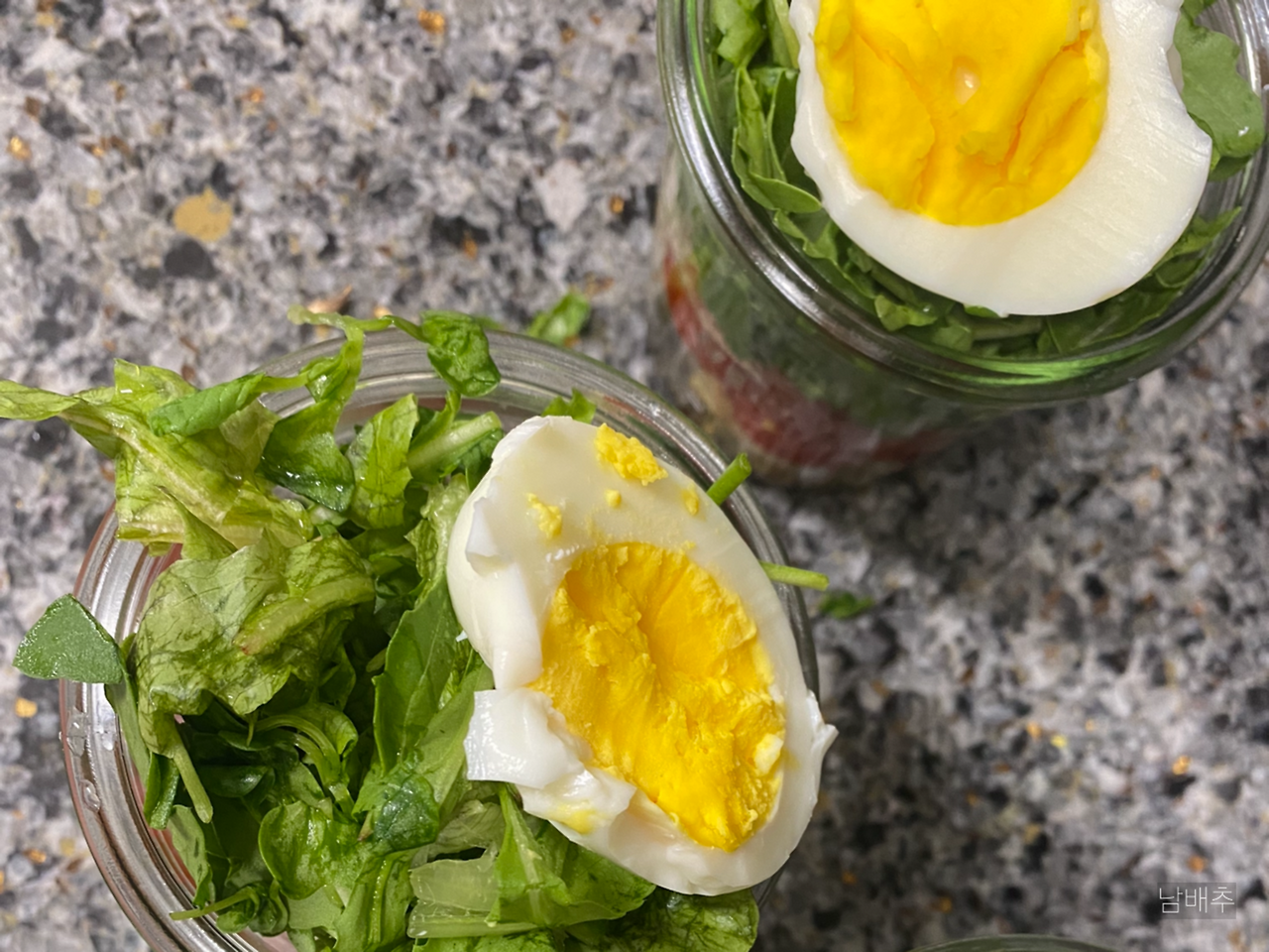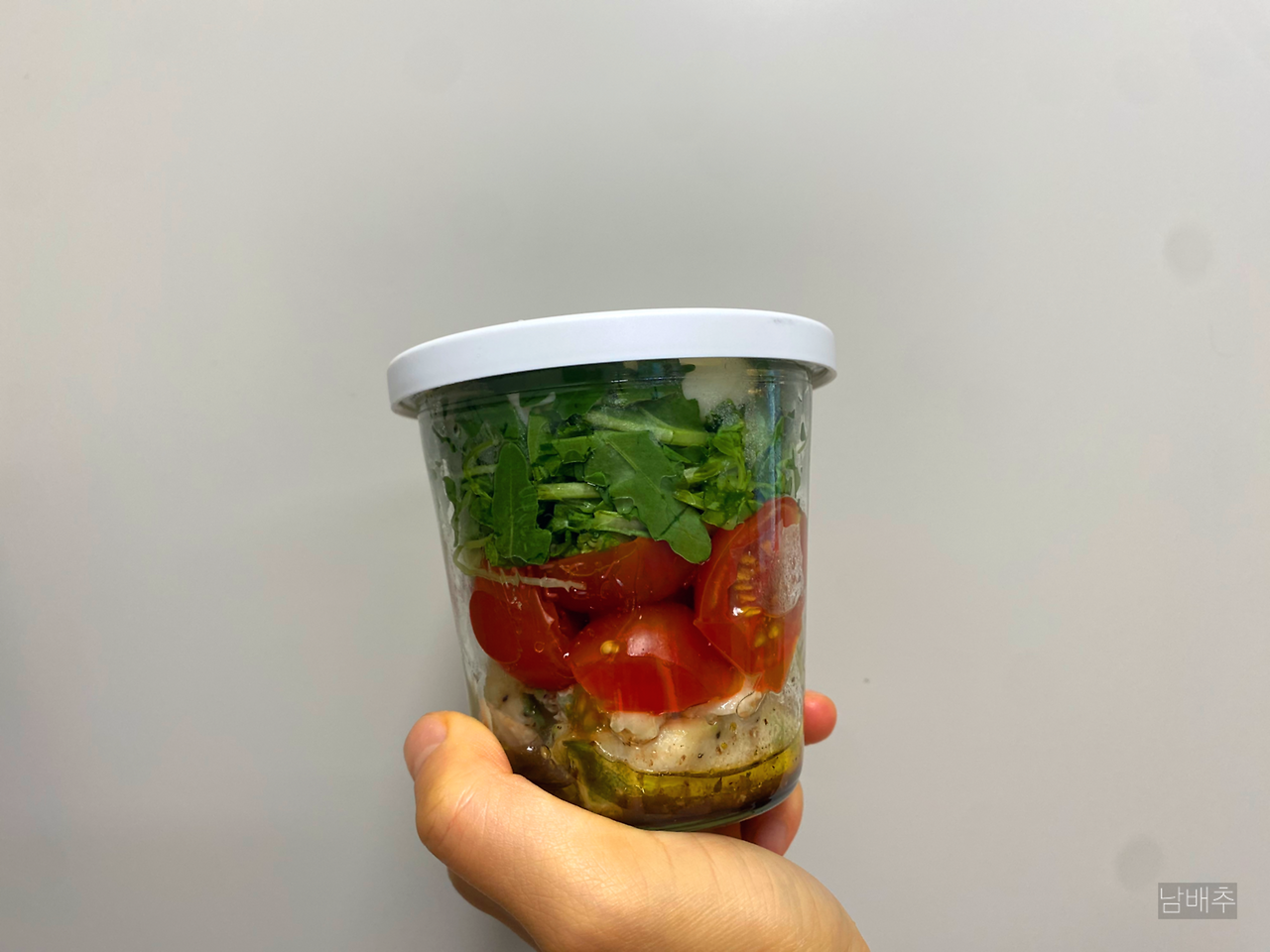 그런데 의외의 방법이 있더라고요. 작은 용기에 적당한 양의 채소들과 단백질을 준비해 두면, 너무 많지도 않은 데다가 몸에도 좋겠다는 생각이 들었던 거죠. 그래서 이제는 작은 병샐러드를 만듭니다. 물론 손이 덜 가는 방식으로요.