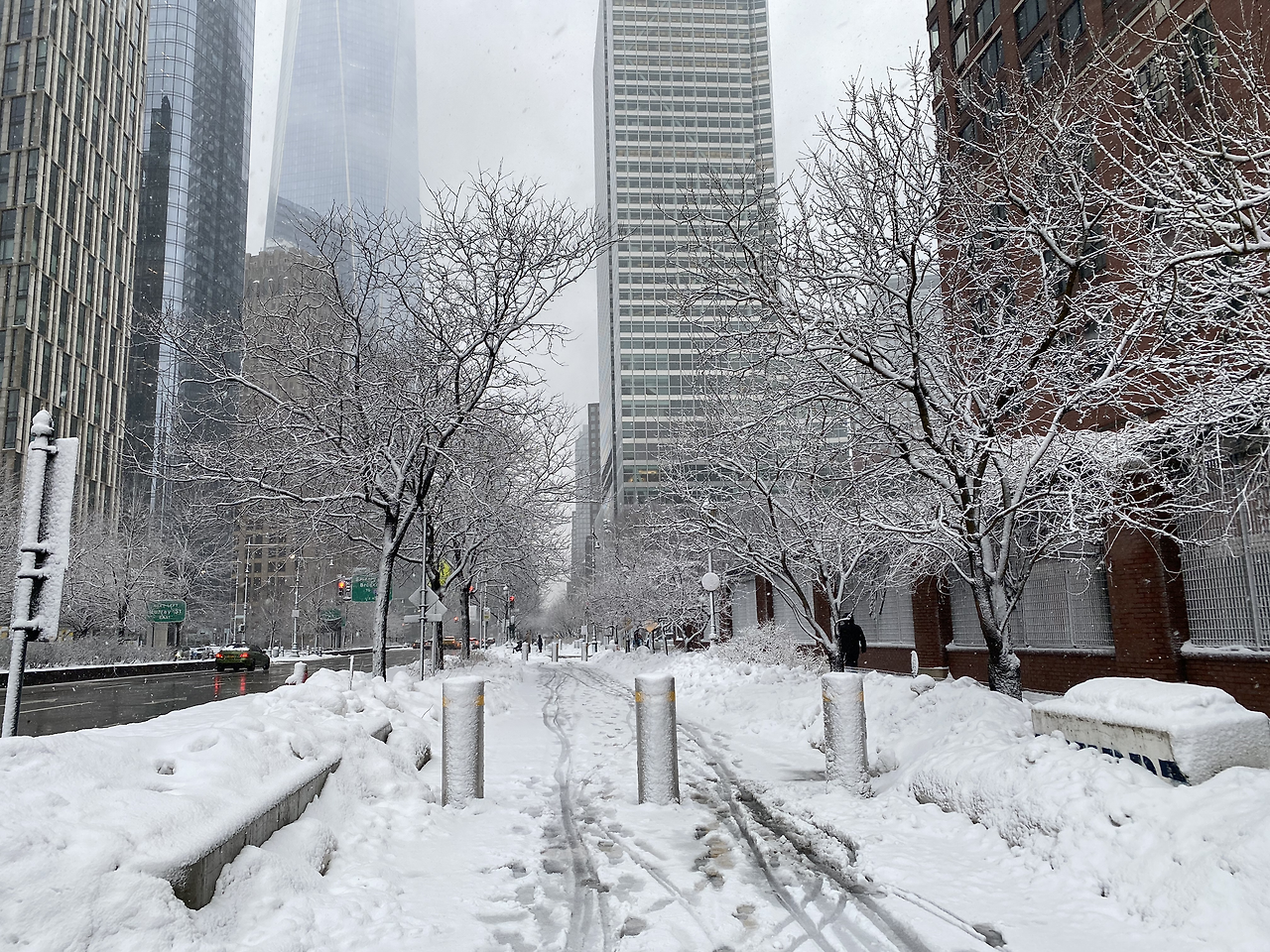 비가 왔고, 황사가 잔뜩 휘감은 초여름 같은 날씨지만, 뉴욕의 겨울 사진을 가져와보았습니다. 눈 오는 날의 뉴욕은 더 아름다워요. 누군가 밟지 않은 하얀 거리는 동화 속 거리를 연상시킵니다.