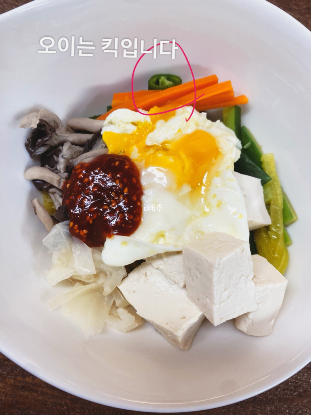 기분 나쁠 때마다 간편하게 만들어 먹을 수 있는 야채두부비빔밥은 열량도 몹시 작아(직접 계산해 본 적은 없으나, 느낌적 느낌) 살 빼는 데에도 유리해서 two thumbs-up을 팡팡 날려주고 싶은데, 우쥬트라이해보시지 않으시겠어요?