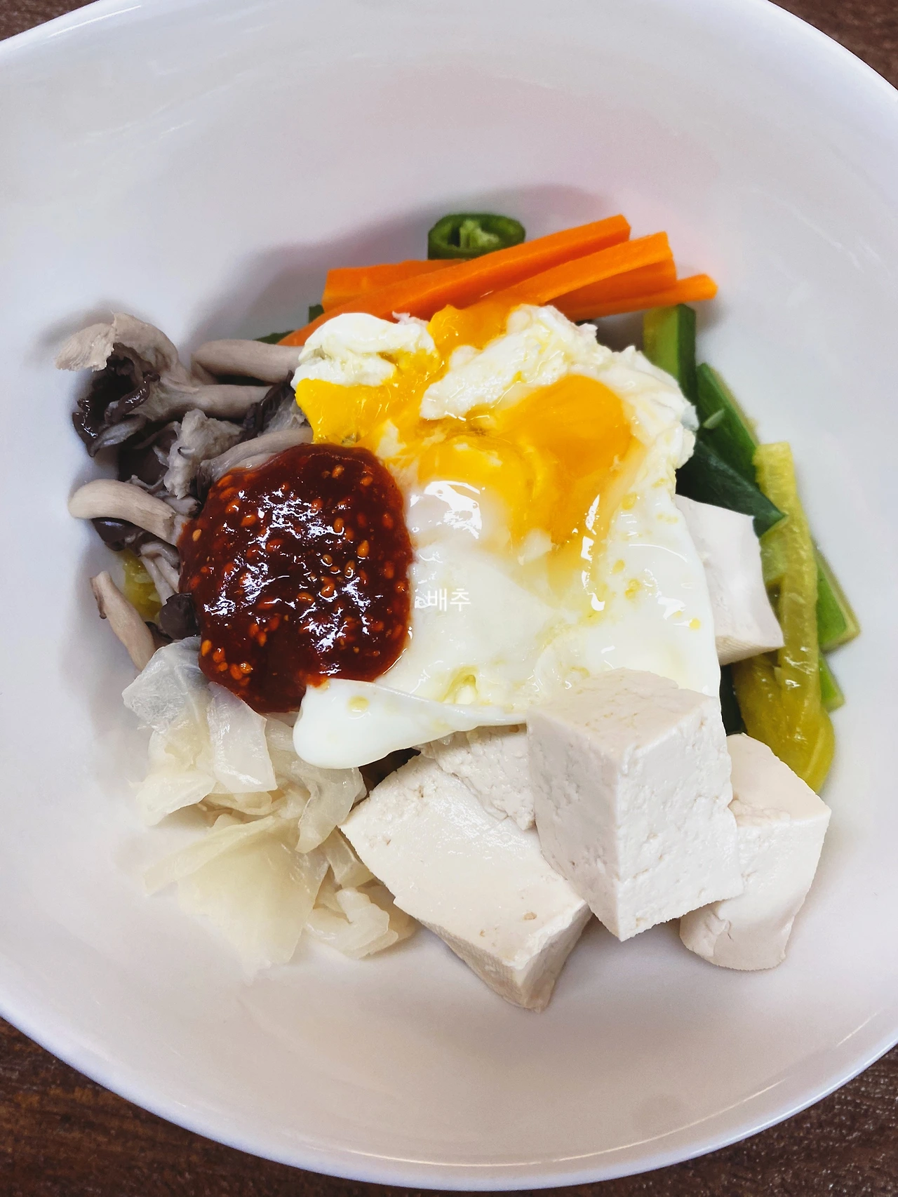 오늘은 매우 다혈질이거나/말이 안 통하거나/화가 몹시 났거나/하시는 분들과 상담이 줄줄이 이어져 멘탈이 60억 광년 떨어진 항성에 가버렸습니다. 다시 멘탈을 잡아올 힘마저 상실해서 우주를 떠도는 기분인데, 이럴 때일수록 더 건강하게 먹어야겠다고 다짐했습니다. 이럴 때 생각나는 건 역시나 야채두부비빔밥입니다.