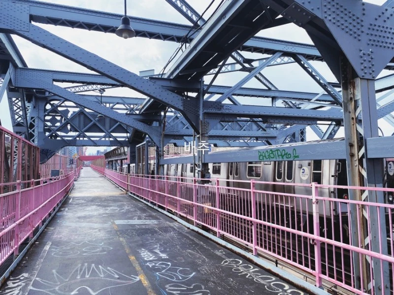 분홍색 다리 윌리엄스버그브리지를 두 다리로 건너봅니다.