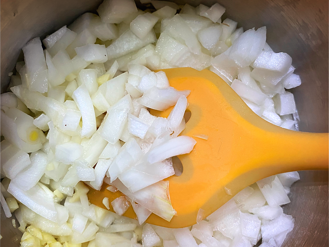 1. 다진 마늘과 양파를 볶다가 소금과 후추로 간을 합니다.