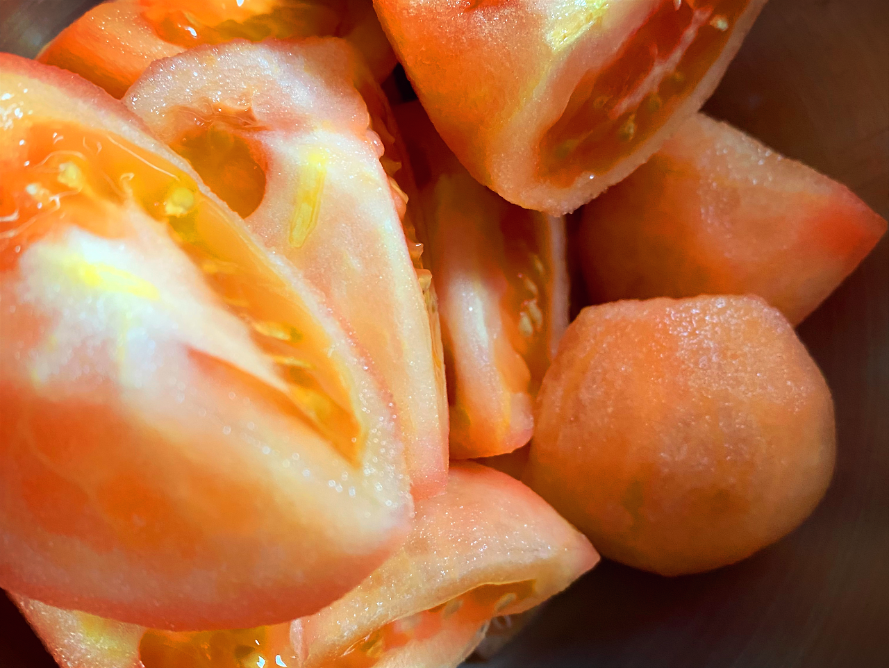 2. 껍질을 깐 토마토를 넣어 볶습니다.