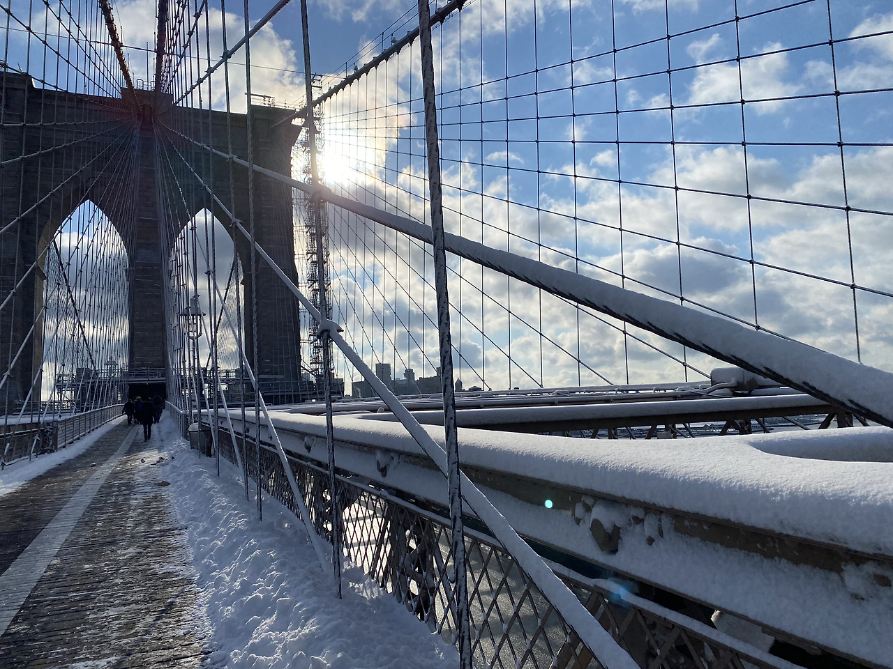 사실 뉴욕의 첫 새해는 기억나지 않는다. 왜인지 모르겠지만 내가 기억하는 뉴욕의 새해는 두 번째로 맞이했던 브루클린 브릿지부터이다. 어쩌면 만삭이었기 때문인지도 모르겠다. 뉴욕이었고, 언제 다시 돌아올지 모르는 외국이었기 때문에 만 가지를 즐기고 싶었던 새해였지만, 만삭의 몸으로는 쉽지 않았다. 양보하고 또 양보해서 브루클린 브릿지에서 새해 첫 해돋이를 맞이해야겠다는 결론에 다다른 2014년 1월 1일. 뉴저지에서 맨하탄을 거쳐 브루클린브릿지까지 가는 건 쉽지 않았지만, 브릿지의 방향이 해가 돋는 동쪽이었기 때문에 가슴이 두근거렸다. 그런데, , 건물들에 가려서 일출은 볼 수 없었다. 다만, 거뭇했던 하늘이 서서히 밝아지면서 붉은 선이 아래에서 위로 번지는 그 광경만이 가능했다. 저녁 늦게 해가 지는 모습을 거꾸로 돌려보는 느낌이라고나 할까? 적잖이 실망한 광경이지만, 다시 새해 첫 해돋이를 보러 브루클린브릿지로 가게 된다면, 커피를 담은 물통과 돗자리를 가지고 가서 해돋이보다는 그 순간에 거기 있었음을 즐기고 싶다.