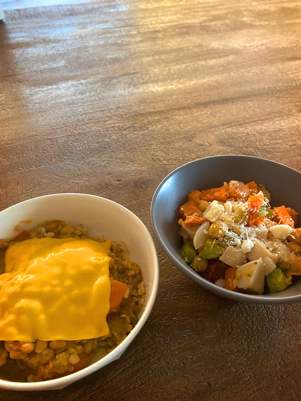 2. 그 위에 체다치즈 1장을 얹고 전자레인지에 1분 정도 돌려줍니다. 찬밥일 경우, 더 오래 돌려주세요.