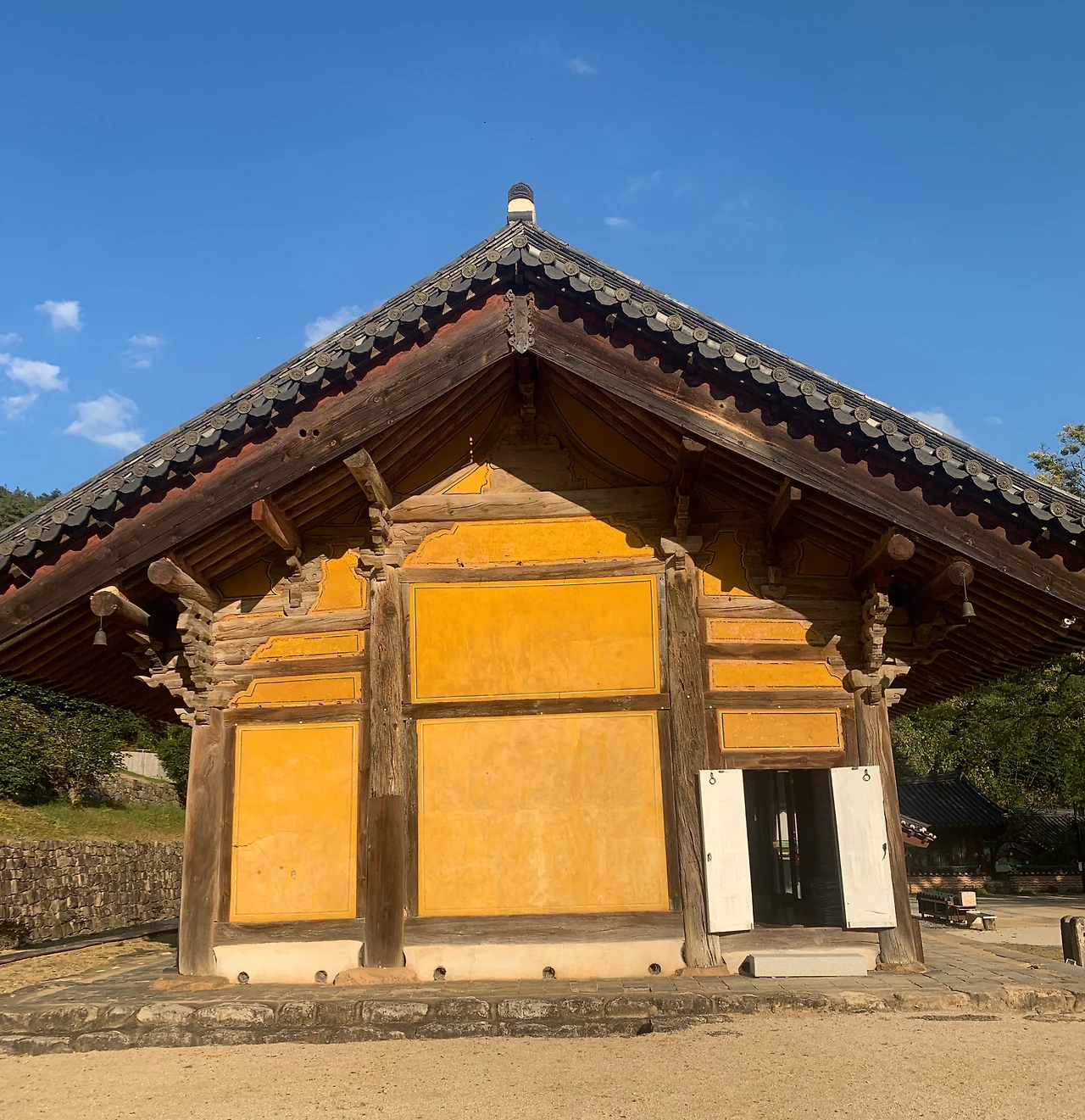 사람 인(人)자 모양으로 맞대고 있는 지붕은 안정감을 주고, 황토색 벽에 드러난 목재들은 사각형 모양으로 조화를 이루고 있다. 조선 초기 건축으로 국보로 인정받고 있다.