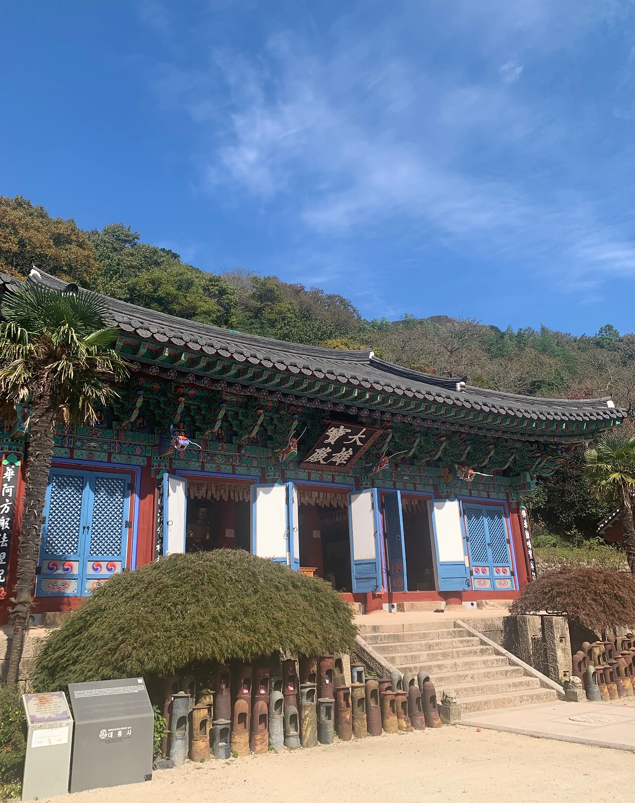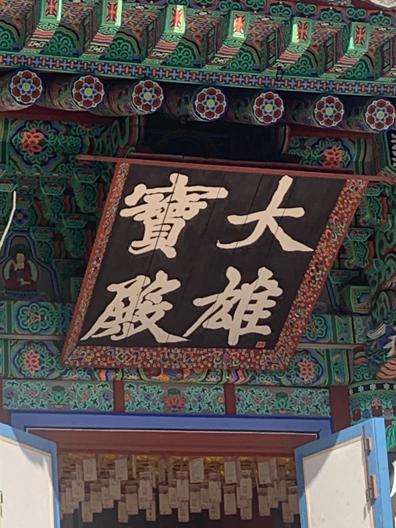 침계루 누각 아래를 통과하면 이번엔 ‘대웅보전’이라는 선명한 글씨의 현판이 시선을 끈다. ‘침계루’와는 글씨체가 완전히 다르구나 생각했는데, ‘대웅보전’ 편액도 이광사의 글씨란다.