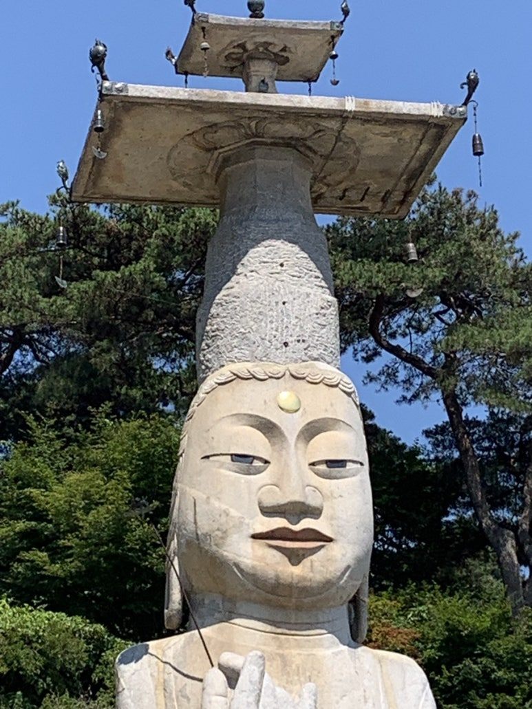 부처님 세상에 들어가기 전에 머리를 숙이고 겸손하라는 의미일까? 좁고 낮은 해탈문으로 들어가면 거대한 불상이 순례객을 반긴다.