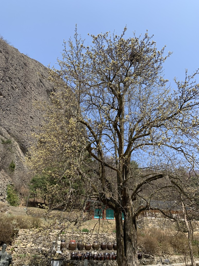 은수사 앞마당에는 높이 15미터의 청실배나무가 있다. 천연기념물 386호다.