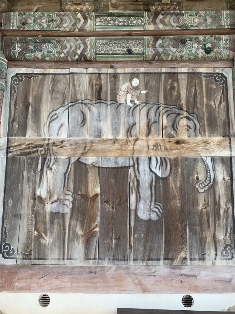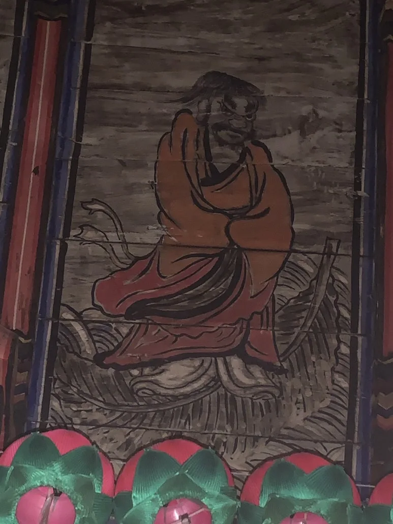보광사 대웅보전 천장화. 바다를 건너는 달마대사