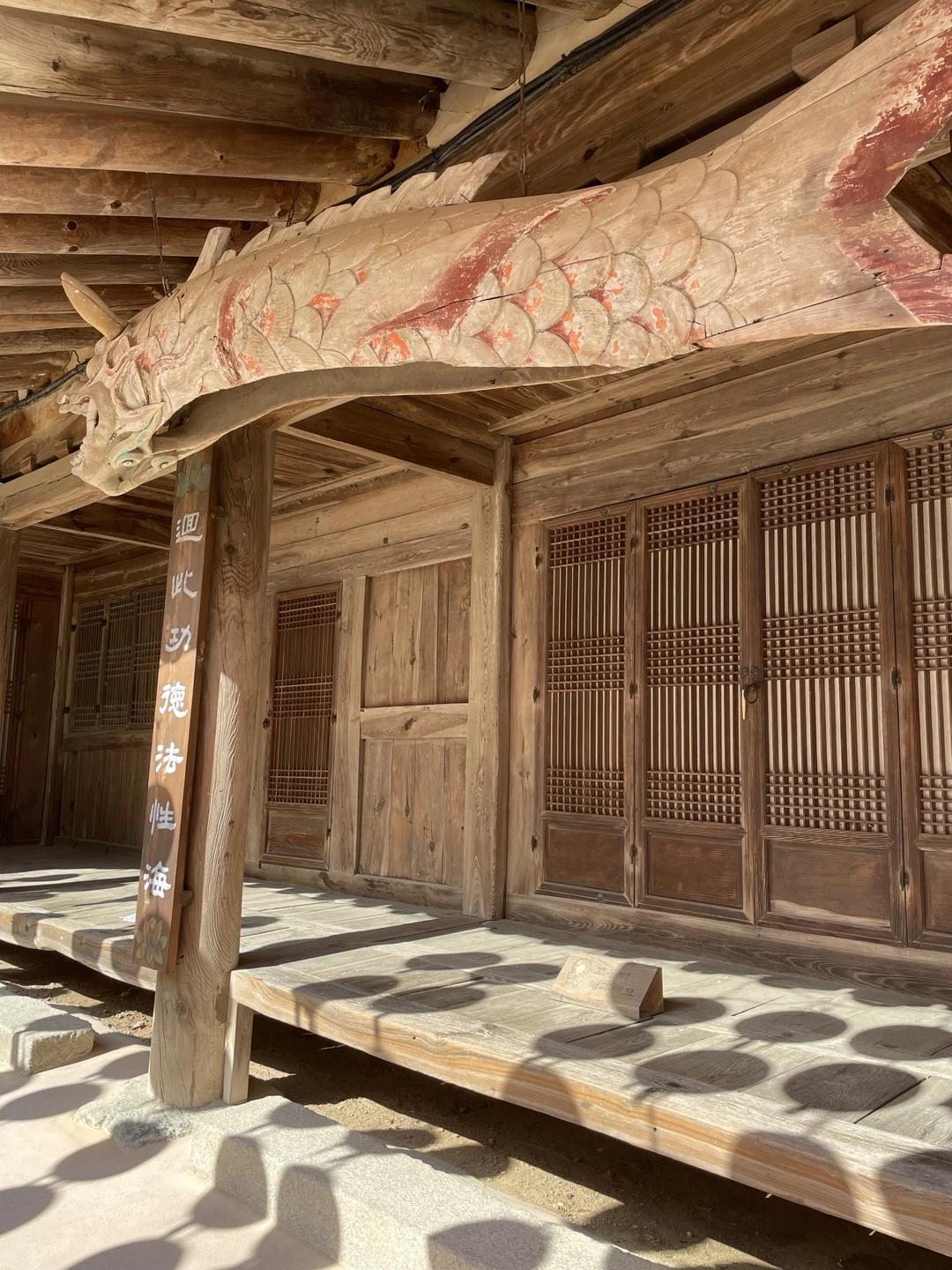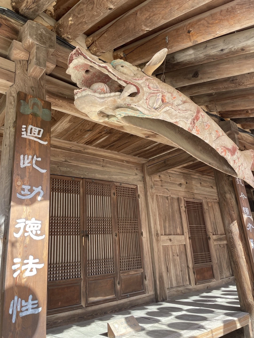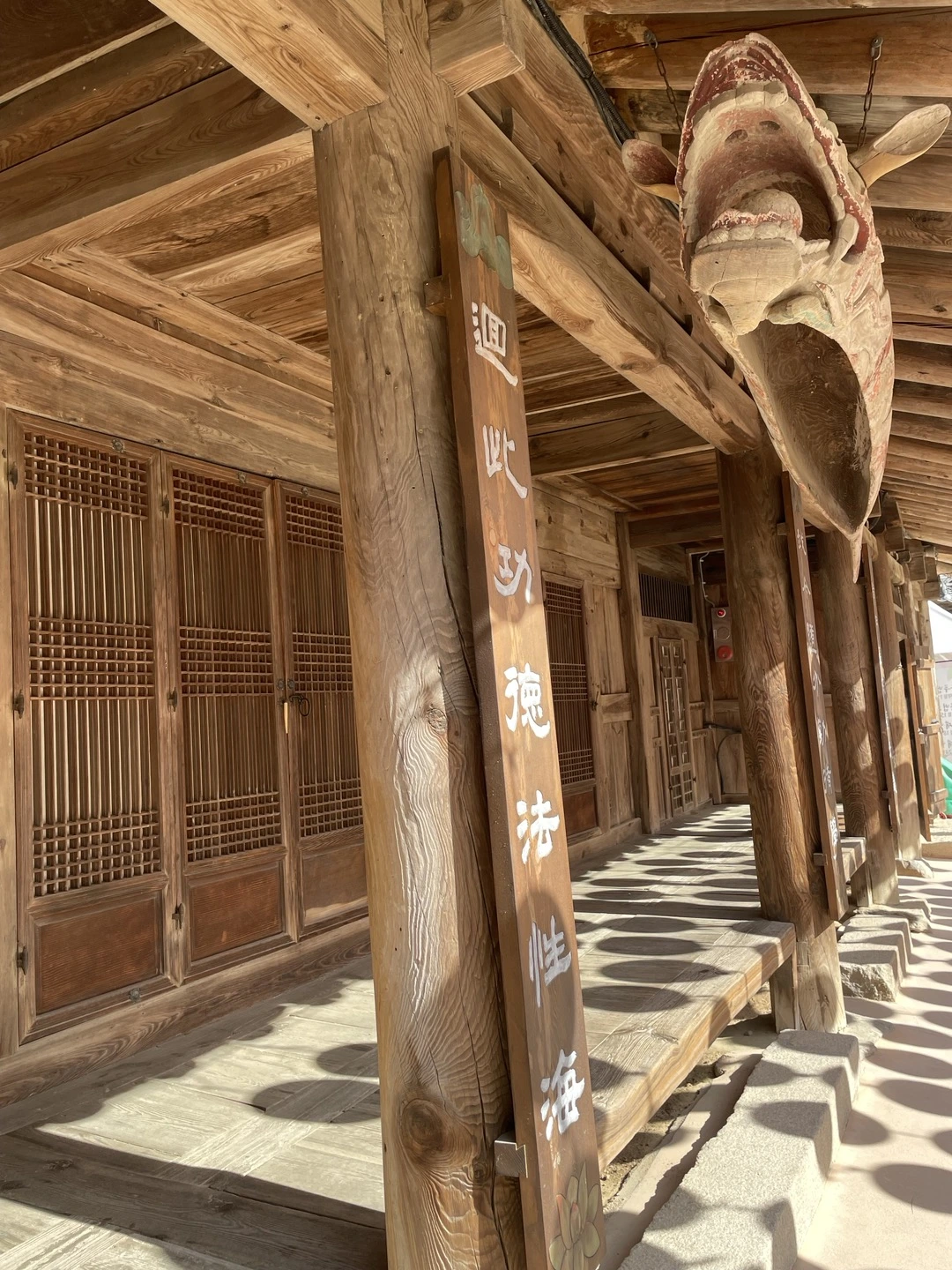 미술관 관람을 마친 기분으로 대웅보전을 내려오다 보면 만세루 툇마루에 홀로 걸린 목어가 다가온다.