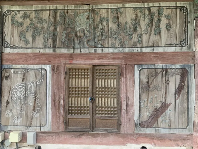 흙이 아니라 나무로 된 판벽인데, 삼면에 그린 그림도 볼 만하다.