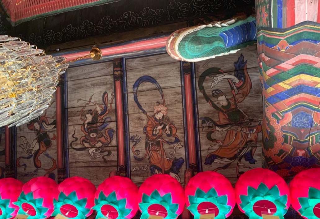 사자를 탄 문수동자나 코끼리를 탄 보현 동자의 모습도 재미있게 표현돼 있고, 흰옷 입은 관음보살과 우락부락 생긴 금강역사의 표현도 실감난다.