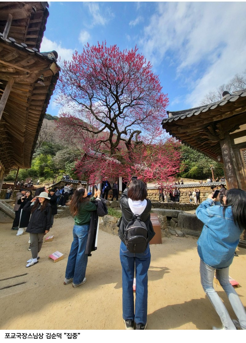 홍매화 피는 한 달 남짓 사진 콘테스트가 열리는 데 첫 해인 2021년 5만 명이 찾았다. 2022년에는 7만 명, 2023년엔 10만 명으로 늘더니 2024년에는 25만 5천명이 방문했다. 절을 찾은 순례객이 4년 만에 5배 넘게 증가한 것이다.