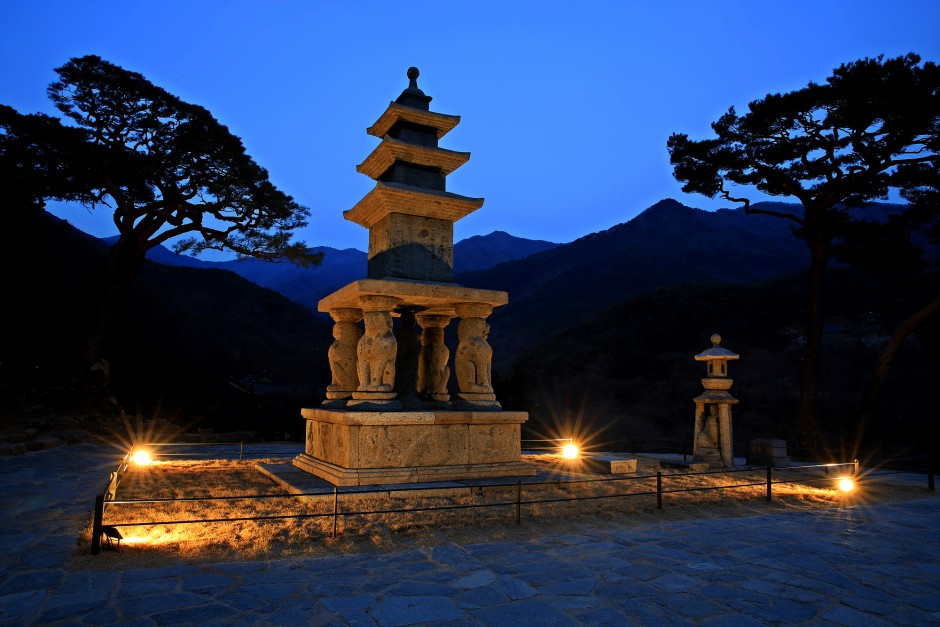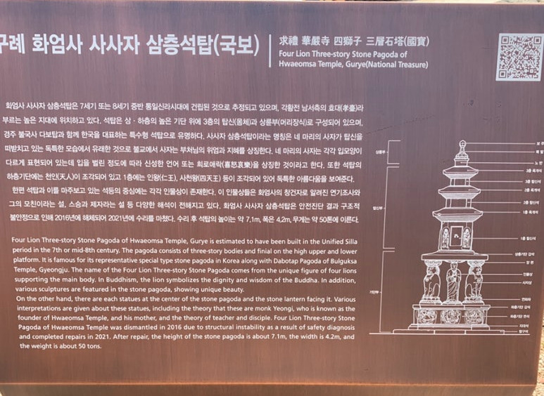 각황전을 바라보고 왼쪽으로 돌아 계단을 올라가면 효대, 국보 35호 4사자 삼층석탑을 볼 수 있다.