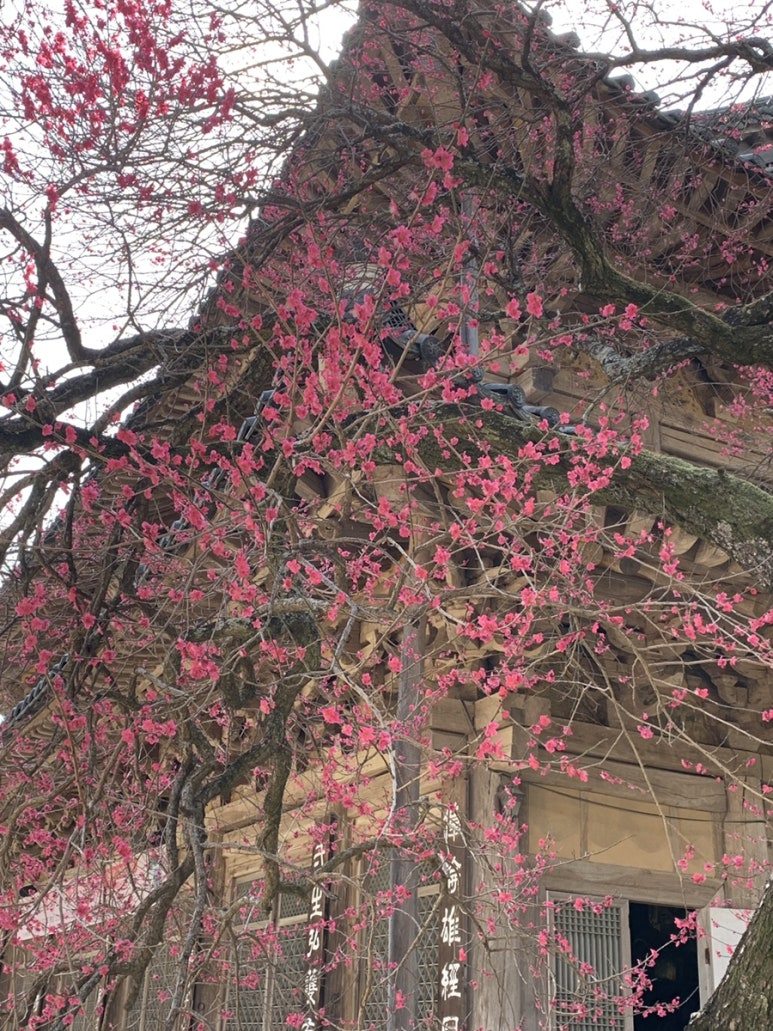3월 화엄사의 슈퍼스타는 부처님이 아니다. 각황전과 원통전 사이에 서 있는 홍매화 나무다.