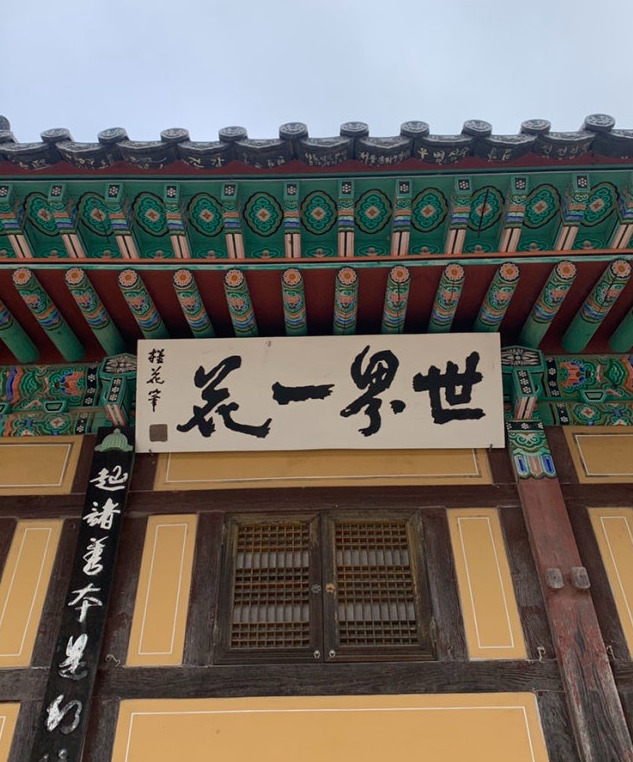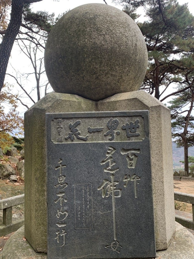 만공탑에는 ‘세계일화’라는 글씨가 선명하다.