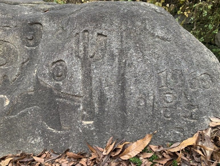 둘레 17m, 높이 85cm와 둘레 7.6m, 높이 75cm의 바위에 글자 같기도 하고 사람 같기도 한 오묘한 암각화가 선명하게 남아있다.