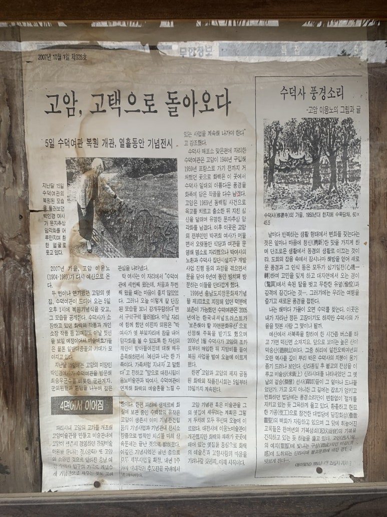 고암은 선배화가인 나혜석이 떠나자 수덕여관을 사들였다. 6.25때를 포함해 이곳에서 작품활동을 하며 살았다.
