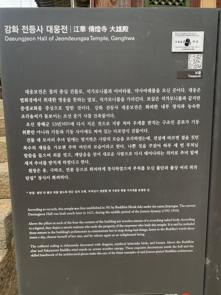 전등사 대웅보전으로 다가가는 데 대웅보전 안내판 한 대목이 눈길을 끈다.
