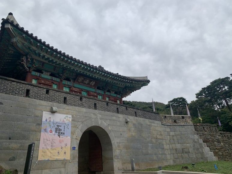 주차장에 차를 세우고 걸어 올라가 ‘남문’ 앞에 섰다. 순례자를 반기는 성곽이 있고 그 위에 누각은 번듯하다.
