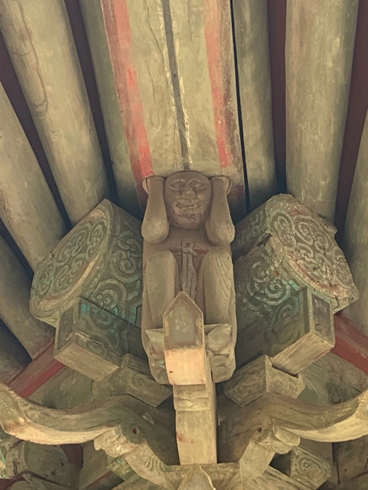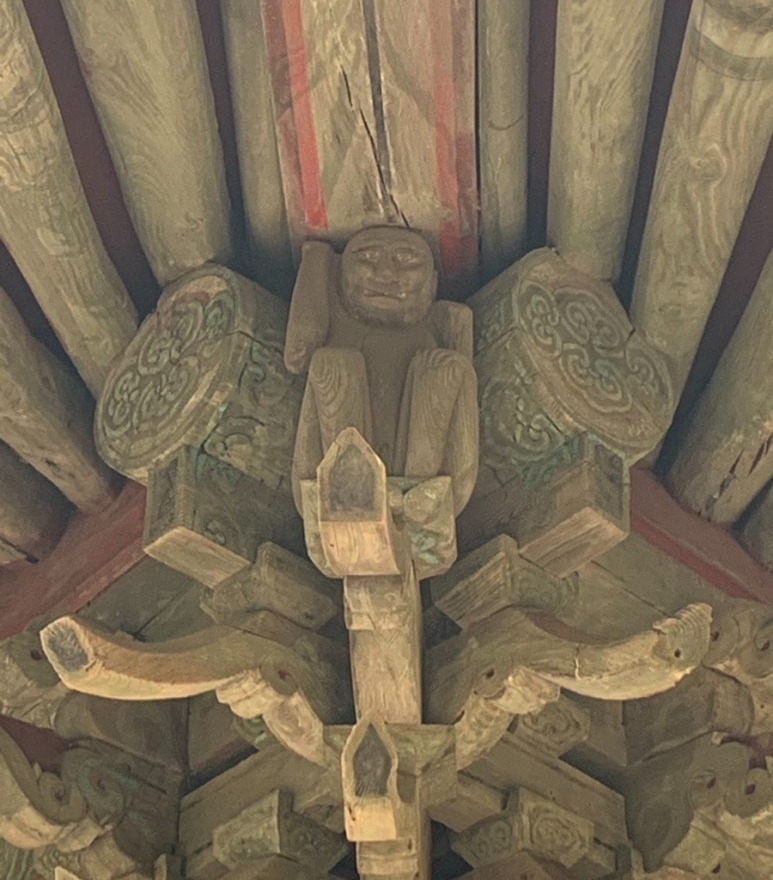 목숨을 바쳐 자신의 원숭이 무리를 구하고, 수많은 중생도 구원한 석가모니 부처님을 위하는 마음에 원숭이들이 대웅보전을 떠받들고 있는 걸로 해석하면 마음이 푸근해 진다.