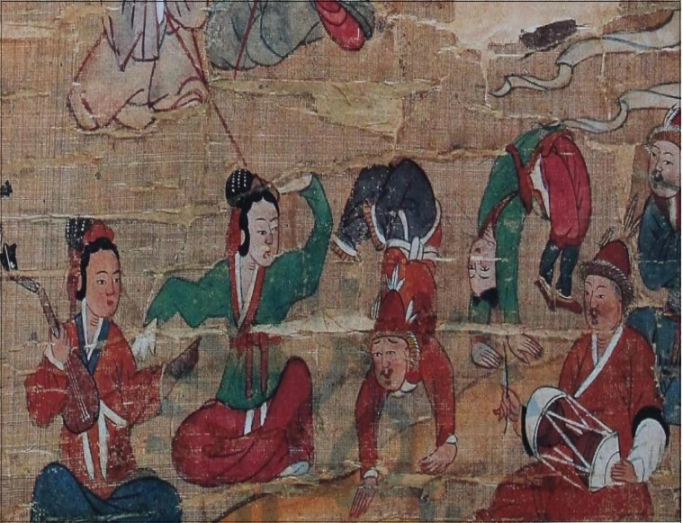 이들 사당패들은 1682년 제작된 청룡사 감로탱에 실제로 등장한다. 감로탱 하단에는 붉은색 초록색 옷을 입고 재주를 넘는 모습, 비파나 작은 북을 연주하는 모습이 잘 묘사돼 있다.
