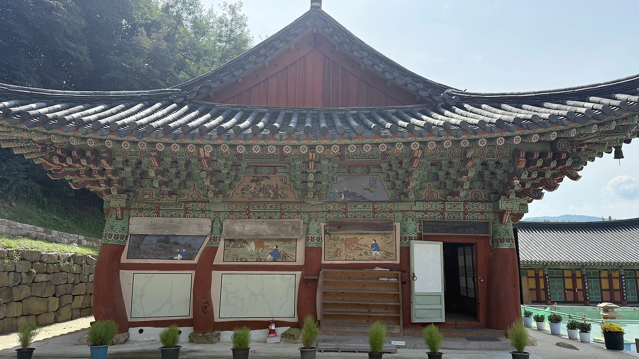 알고서 다시 보니 대웅전이 마치 불경 소리에 맞춰 흔들~흔들~ 좌우로 몸을 흔드는 것 같기도 하고, 범패에 맞춰 춤을 추는 것 같기도 하다.