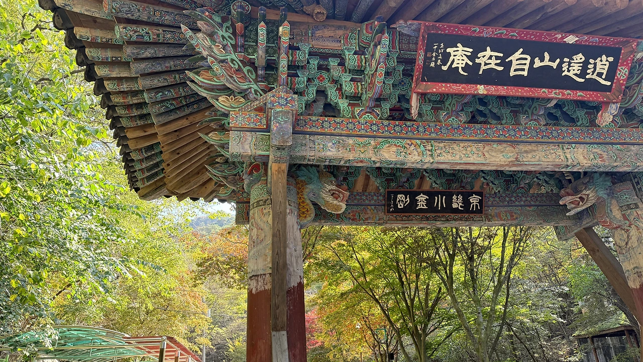 알 조형물을 뒤로하고 걷다보면 소요산 자재암이라고 쓴 일주문이 나오고 ‘경기소금강’이라는 현판도 눈에 들어온다.