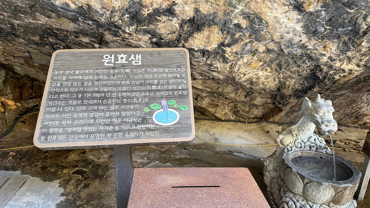 물이 맑기로 유명하다는 팻말도 서 있다. 원효대사는 물과 관련된 사연이 많은 분 아닌가? 그래서 맑은 물(?)에 더 집착하셨나?