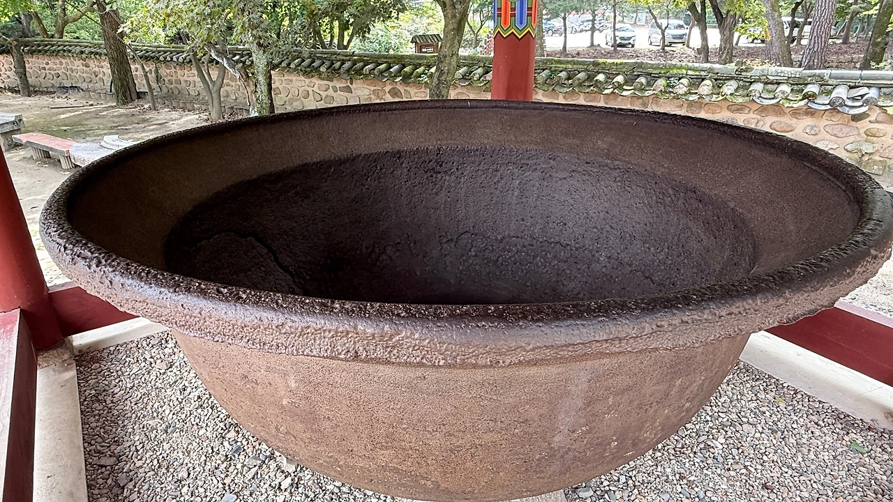 수많은 중생을 먹이는 건지, 슈퍼 히어로의 솥단지인지…금강문 근처에는 둘레 10.8미터, 직경이 2.7미터, 높이 1.2미터, 무게 20톤짜리 거대한 쇠솥(鐵鑊,철확)이 있다.