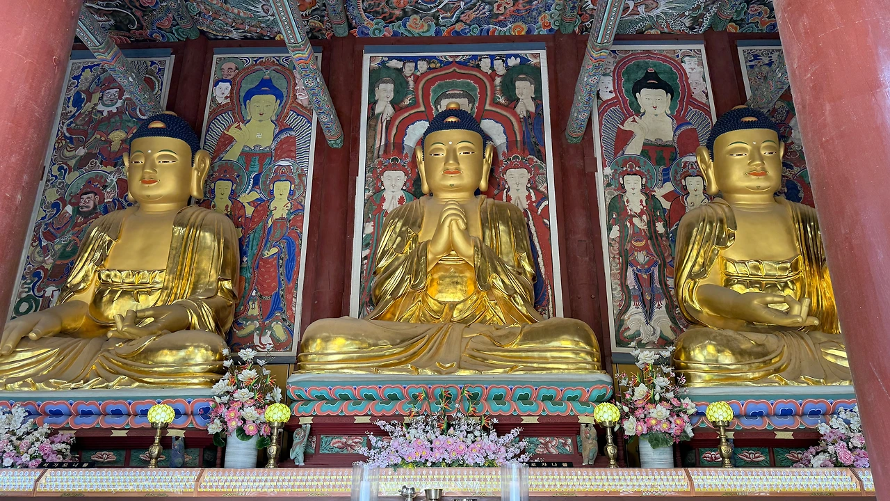 내부도 웅장하다. 앉은키가 각각 5미터, 4.9미터, 4.7미터로 우리나라에서 가장 큰 부처님 세 분이 있다.