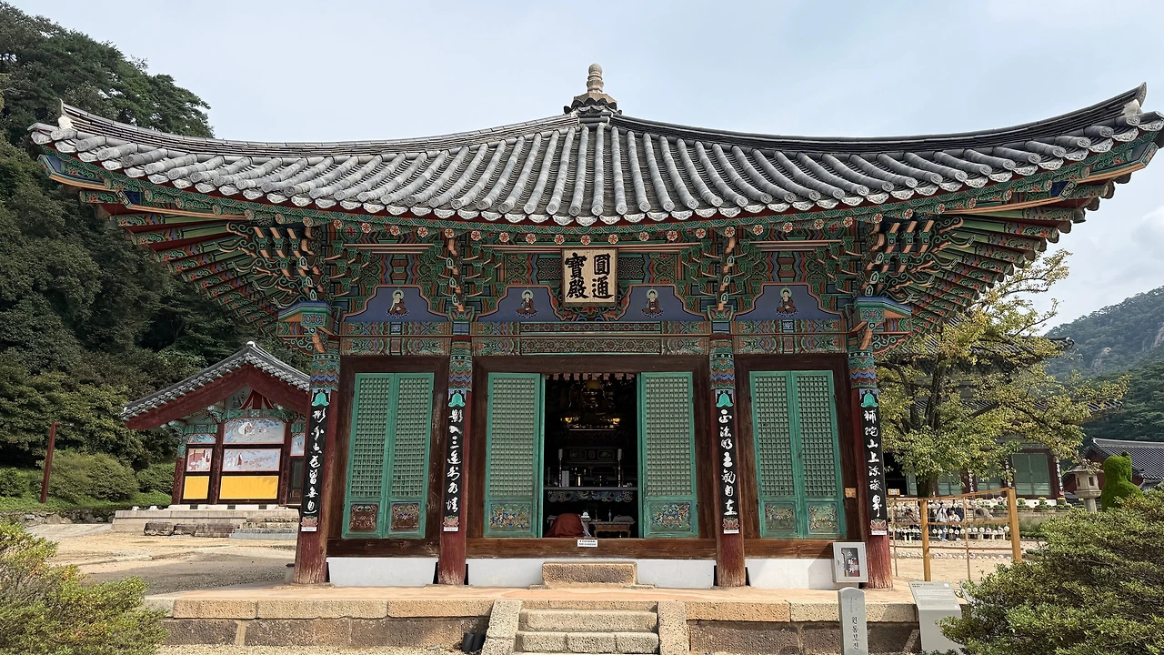관음보살을 모신 원통보전도 그냥 지나칠 수 없다. 정사각형 모양의 건물로 내부에는 목조 관음보살좌상과 남순동자, 용왕상이 있다. 한국을 대표하는 미륵도량일지라도 다른 부처님들도 살뜰히 모시고 있어 과연 세계의 문화유산이라는 생각이 들기도 한다.