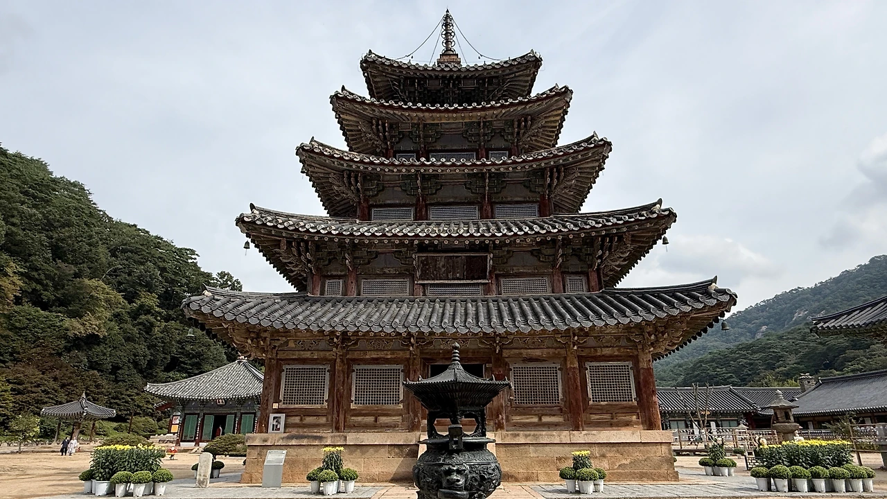 돌로 만든 연꽃 모양 연못인 석련지(石蓮池)와 쌍사자석등 같은 국보 3점과 대웅보전과 원통보전 등 보물 12점을 비롯해 역사적, 학술적, 예술적 가치가 높은 국가유산을 품고 있는 법주사.
