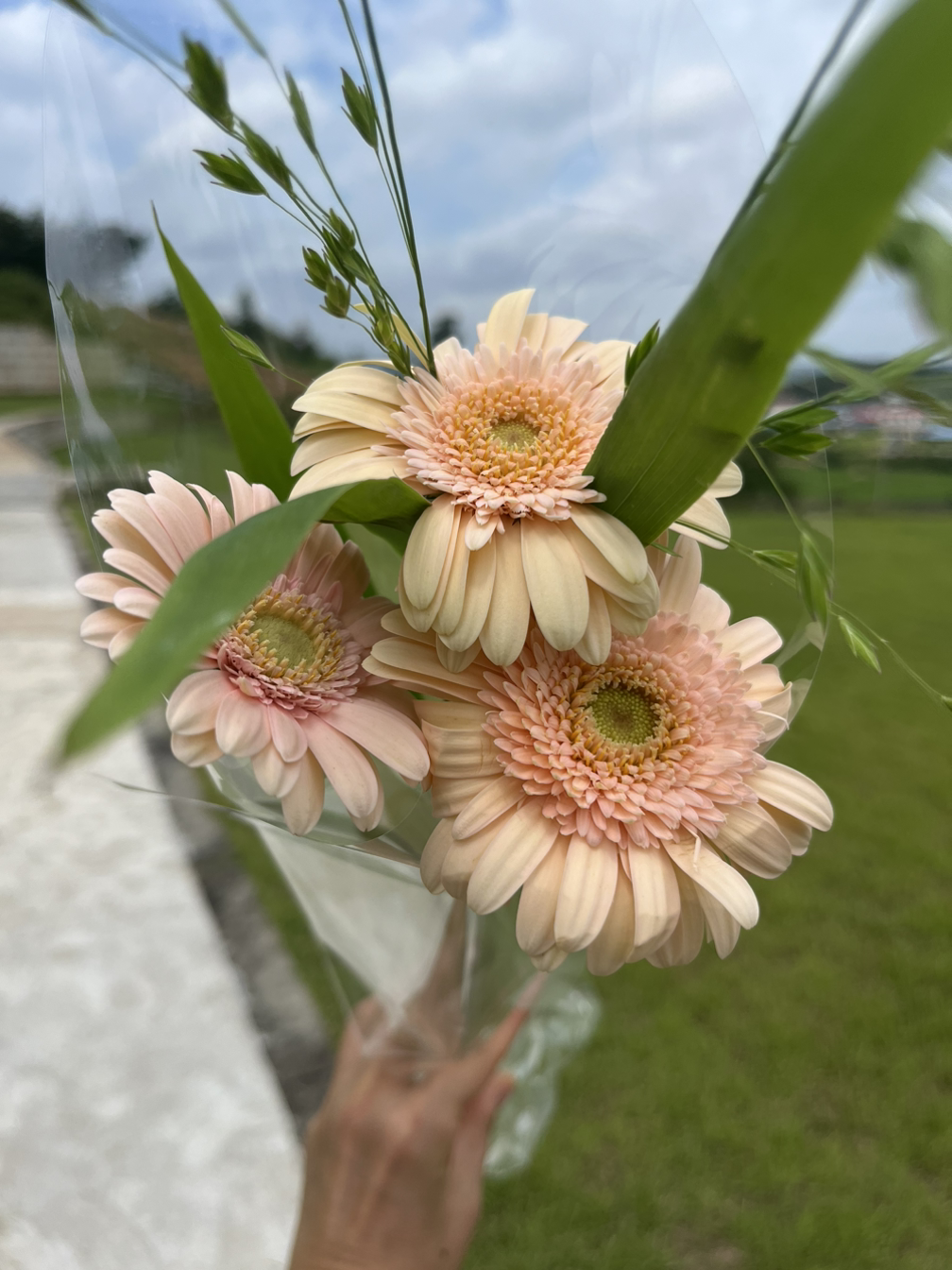 엄마에게 모든 것을 털어놓고 용서를 빌러 부활동산에 갔다. 빈손으로 갈 수는 없지. 꽃말이 화해, 용서인 핑크 거베라 한 묶음을 샀다. 두툼한 꽃잎과 선명한 색이 아름답다. 자세히 들여다보니 활짝 핀 엄마의 얼굴이 보인다. 부활동산의 산기슭에 도착하자마자 목청껏 ‘엄마’하고 불러본다. 동산 뒤에 펼쳐있는 망해산이 따스한 눈으로 나를 지그시 바라본다.