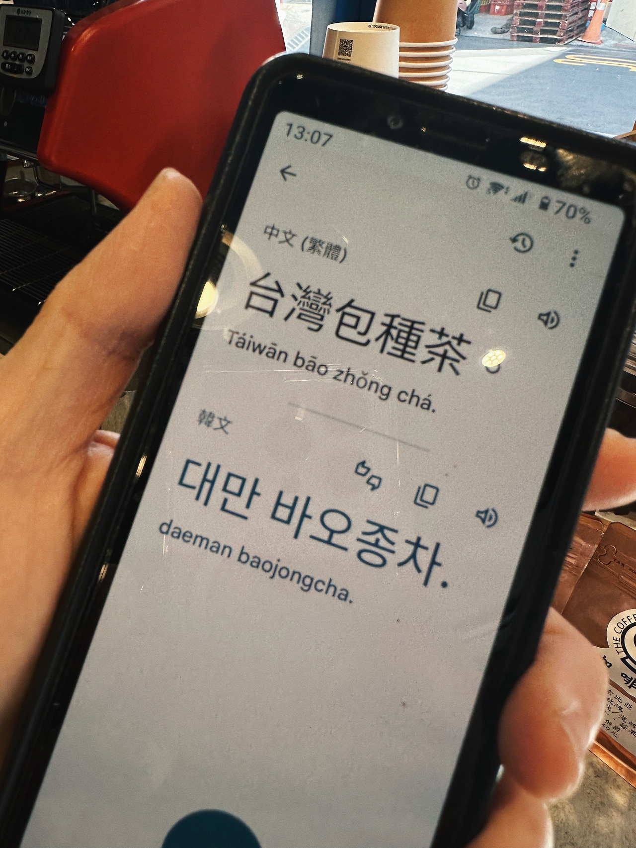 용산사에 너무 일찍 도착하는 바람에 저녁까지 두어 시간을 보내려고 찾은 카페였다. 커피가 의외로 맛있어서 주인아저씨에게 칭찬했더니, 잠시 후에 차를 서비스로 주신다. 차의 이름을 물어보니, 영어로 소통하는 게 어려우셔서(나도 그렇지만) 번역기를 이용해 '대만 바오종차(台灣包種茶)'라고 알려주셨다.