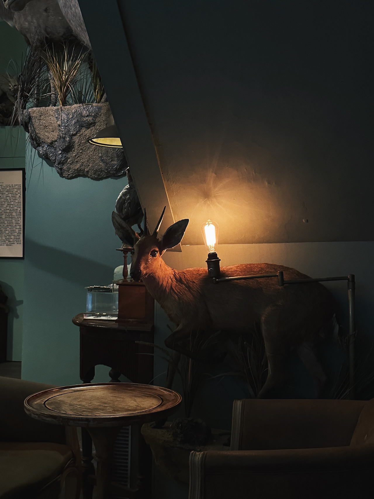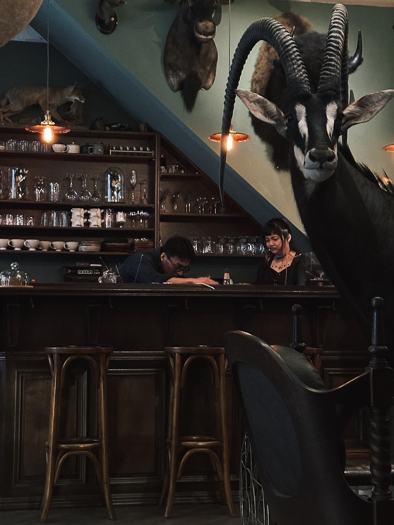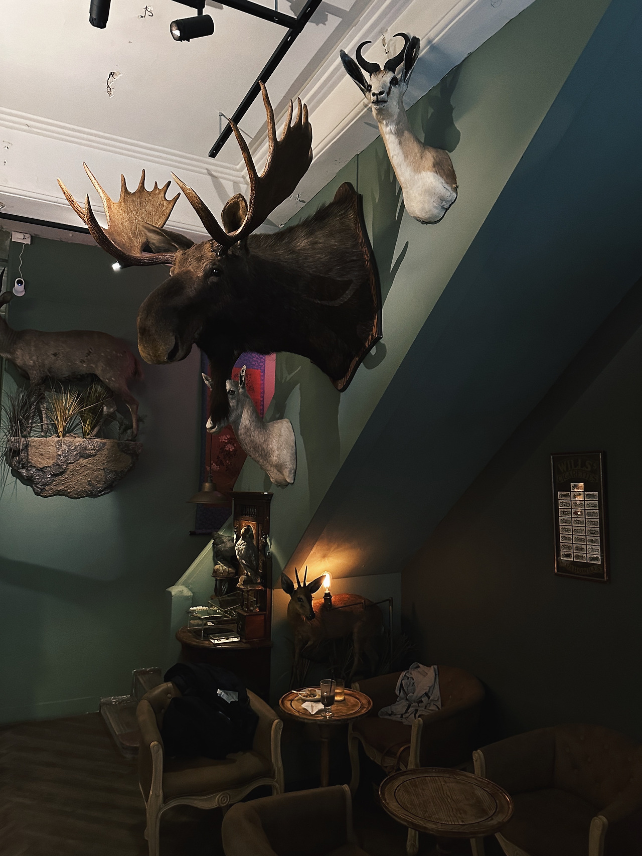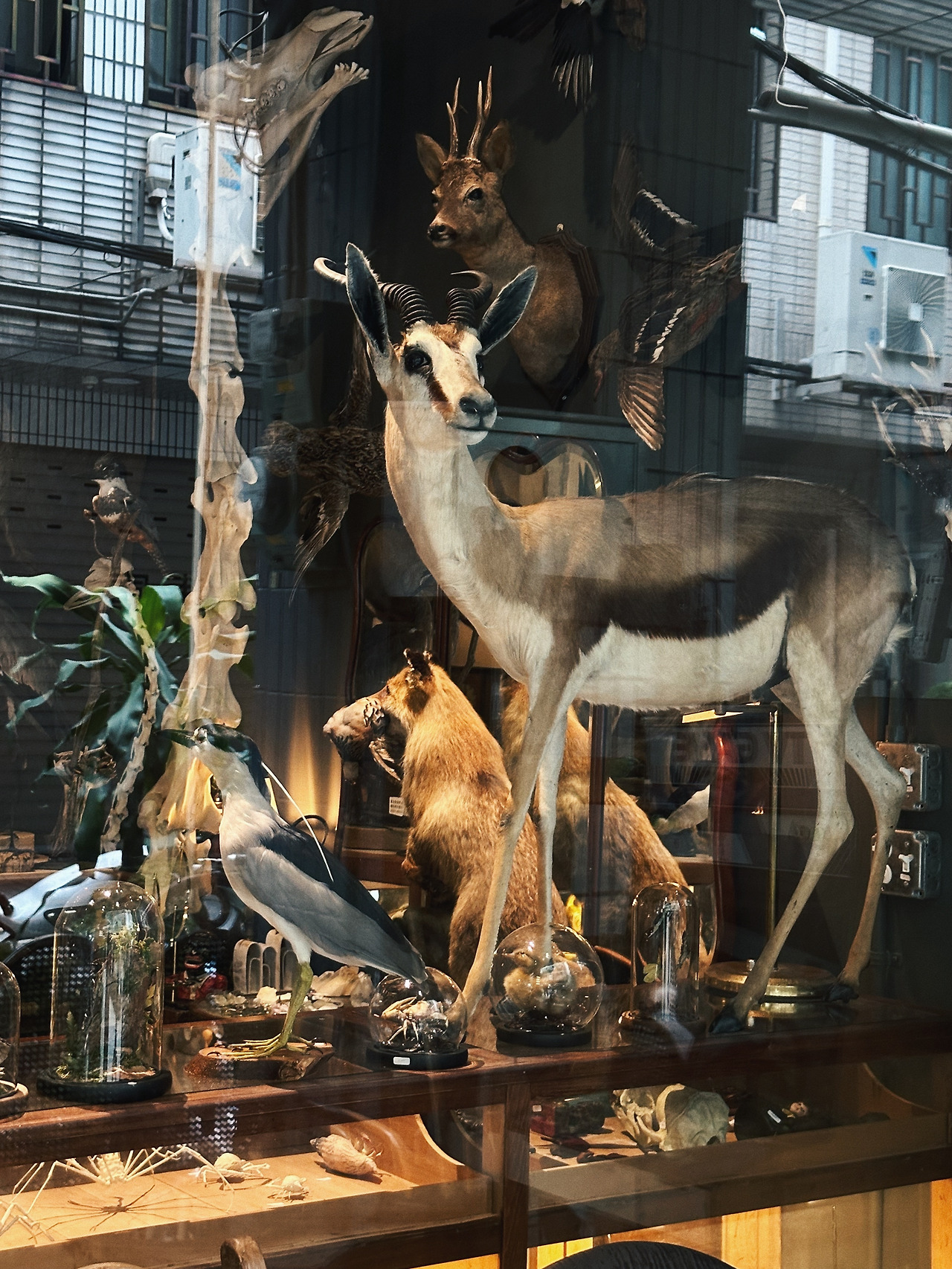 막상 들어오니, 동물원에 들어온 어린아이 마냥 신이 났다. 박제를 장식한 게 아니라 박제를 전시하고 남은 공간에 테이블이 있다. 그저 상상도 못 했던 공간에 들어와 있다는 게 신기했다. 종류가 너무 많아 구경하느라 정신이 없었다.