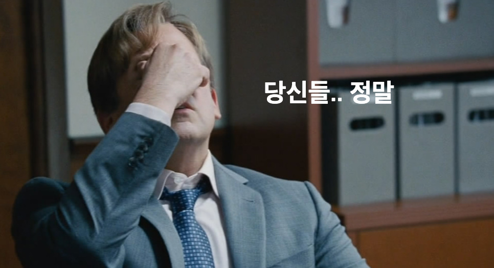마크바움은 도대체 왜 이런 개똥 같은 상품에 높은 등급을 주냐고 따집니다. 담당자는 오히려 ‘너는 얼마나 잘났냐, 이 바닥에 있는 한 당신도 위선자’라며 오히려 비난을 퍼붓습니다. 그러고는 “우리가 안 해주면 다른 회사를 찾아갈 것이다. 그 들도 나와 같은 등급을 줄 것이다. 우리만 고객을 잃을 수는 없지 않으냐”라며 반격합니다.
